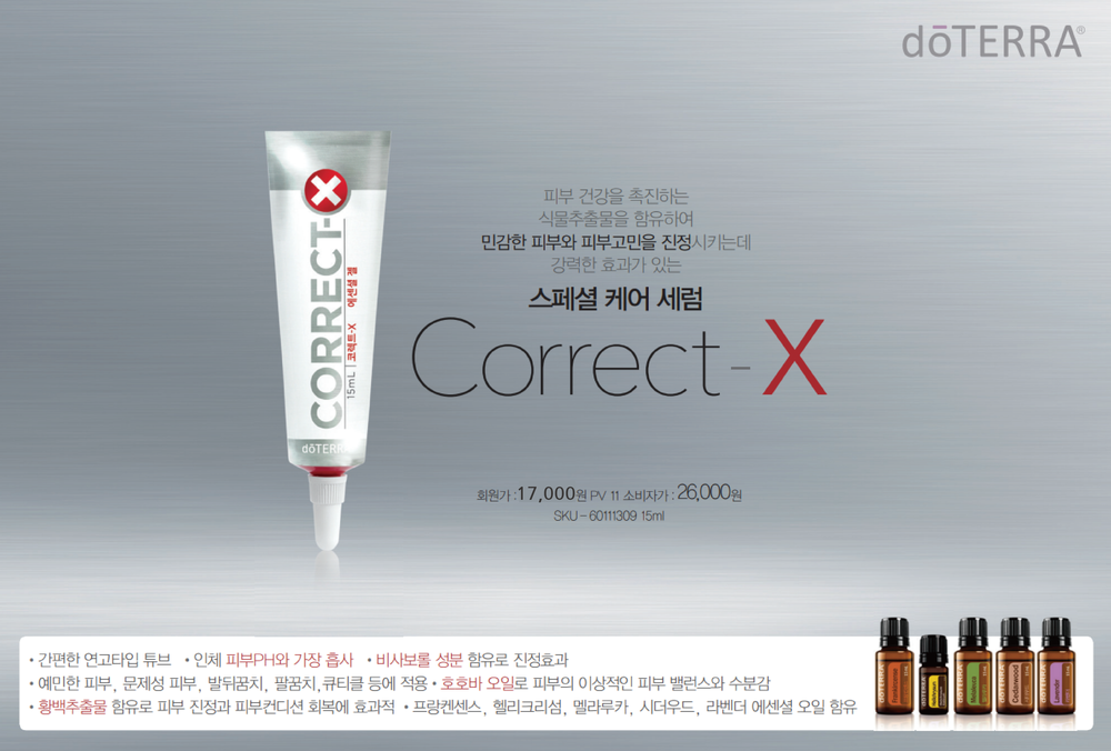 도테라 코렉트-X는 피부 건강을 촉진하는 다양한 식물 추출물을 풍부하게 함유하고 있어 민감한 피부를 진정시키고 피부 고민을 해결하는데 효과적인 스페셜 케어 세럼입니다.