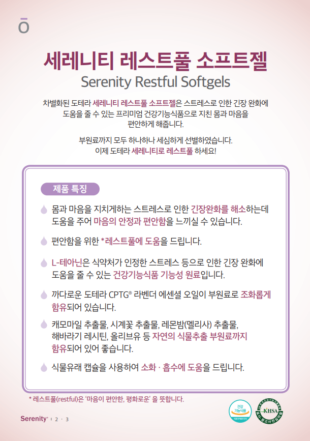 세레니티 레스트풀 소프트젤 60캡슐(긴장감, 스트레스 해소, 숙면)