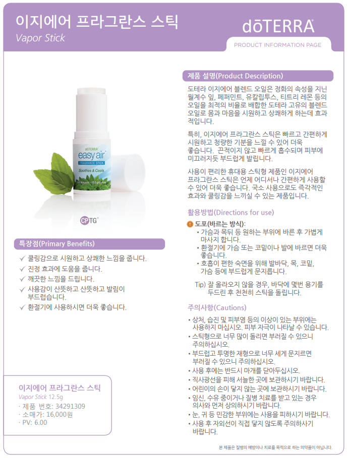 특히, 이지에어 프라그란스 스틱은 빠르고 간편하게 시원하고 청량한 기분을 느낄 수 있어 더욱 좋습니다. 끈적이지 않고 빠르게 흡수되며 피부에 미끄러지듯 부드럽게 발라집니다.