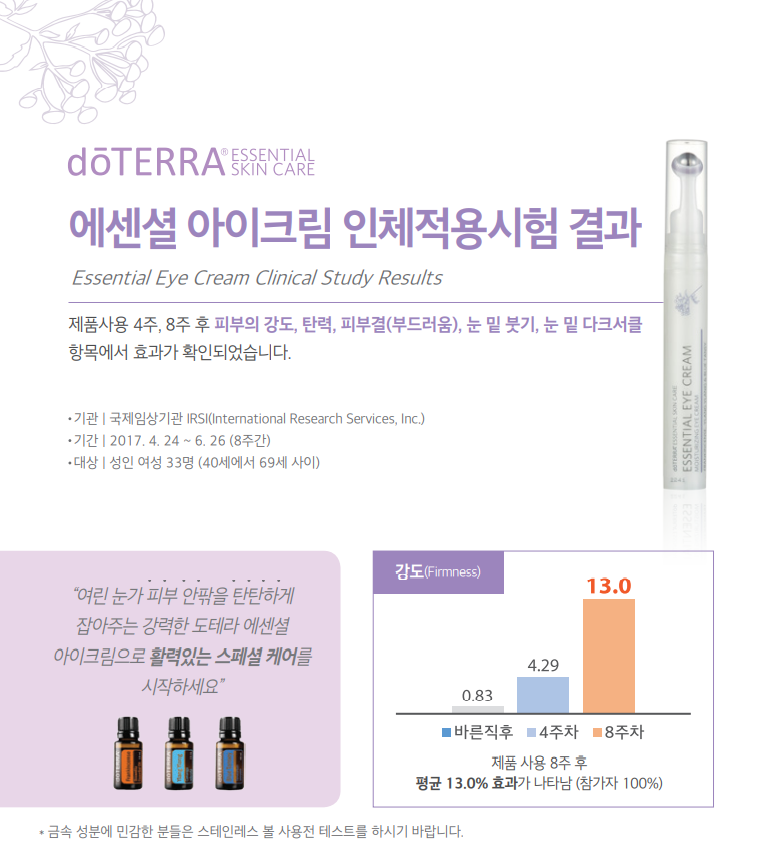 특히, 식물성 성분인 바쿠치올은 세월의 흔적으로 인한 피부고민 해결에 탁월한 도움을 줍니다. 예민하고 얇은 눈가 주변을 특별한 도테라 아이크림으로 관리해보세요.