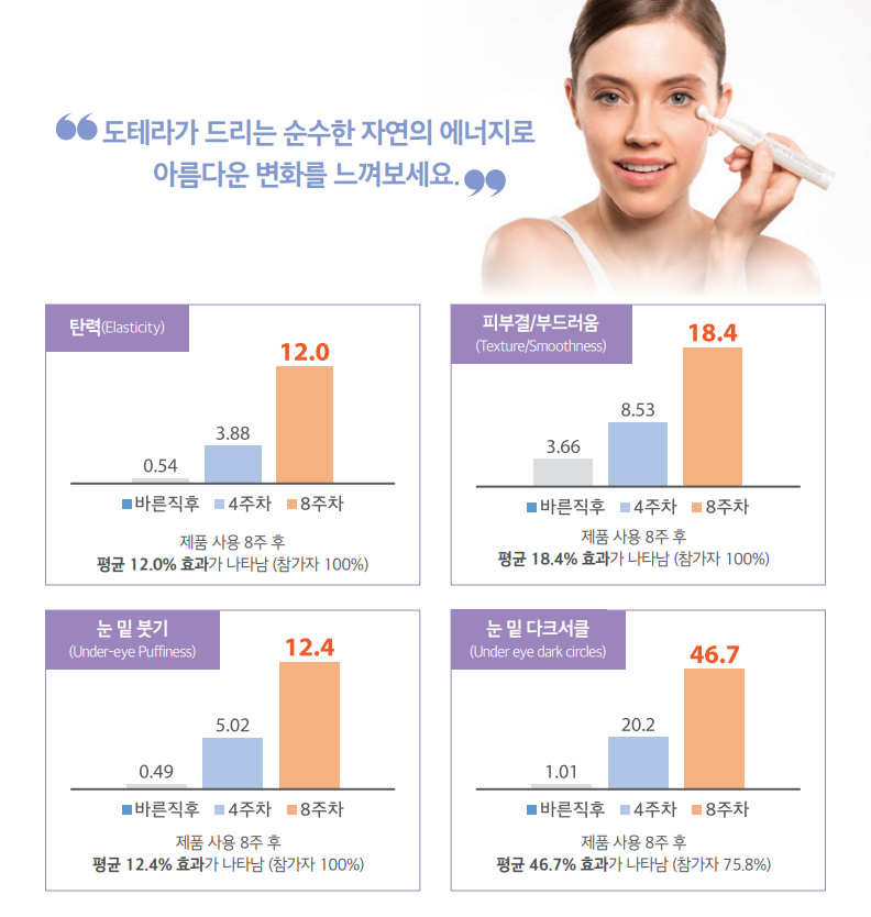 특히 인체적용 시험에서 눈에 띄는 변화가 입증된 도테라만의 특별한 기술력으로 개발한 제품입니다.