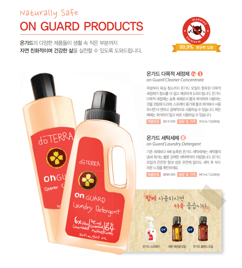 도테라 온가드 생활 제품들은 화학물질이나 독성이 있는 성분들을 최대한 배제한 자연주의 제품으로, 생활 속 작은 부분까지 건강한 삶을 실천할 수 있도록 설계되었습니다.