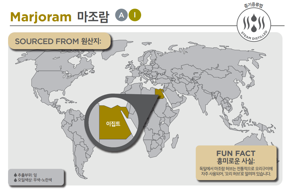 고대 이집트에서 미이라를 만들 때 최초로 사용한 스파이스 가운데 하나인 마조람은 지중해 동부 연안이 원산지입니다.