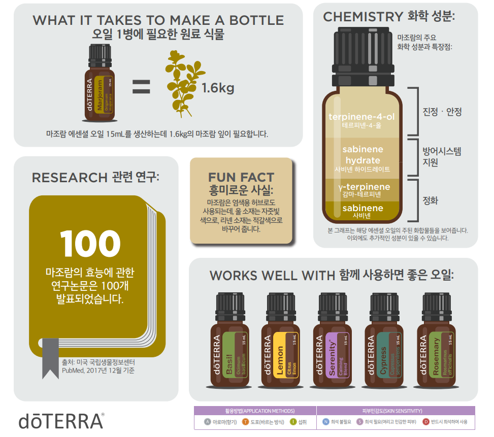 그리스, 로마시대부터 잘 알려져 있는 마조람은 행복의 상징으로 여겨지며, ‘산의 즐거움’ 또는 ‘산에서 나는 행복’이라고 불립 니다.
