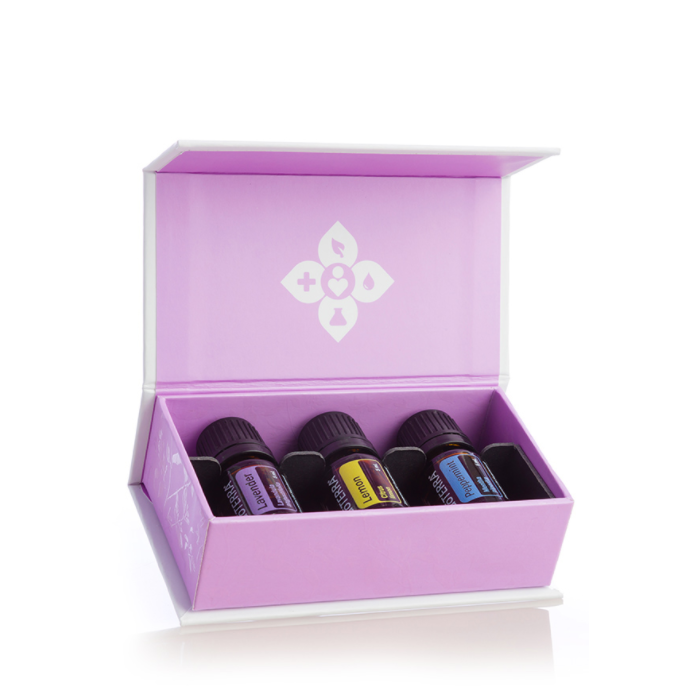 도테라 에센셜 오일의 베스트셀러 제품인 라벤더 5mL, 레몬 5mL, 페퍼민트 5mL 3가지 제품으로 구성되어 에센셜 오일을 처음 접하시는 분들이 사용하기에 좋은 키트입니다.