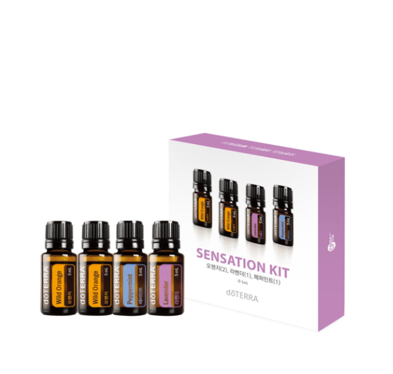 가장 인기있는 에센셜 오일인 페퍼민트 5ml (1), 라벤더 5ml (1), 오렌지 에센셜 오일 5ml (2) 총 4개입으로 구성되어 있는 키트입니다.
