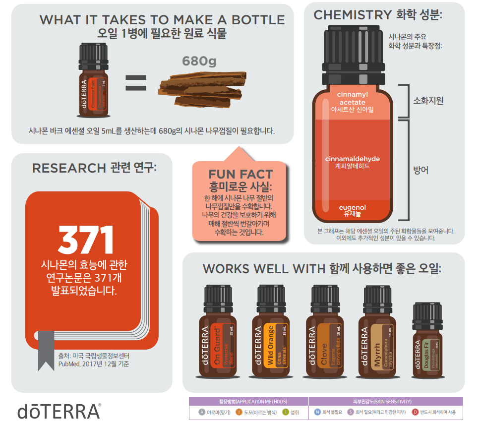 도테라 시나몬 바크 에센셜 오일을 메인 요리나 디저트, 음료 등에 첨가하여 사용하시면 더욱 좋습니다.