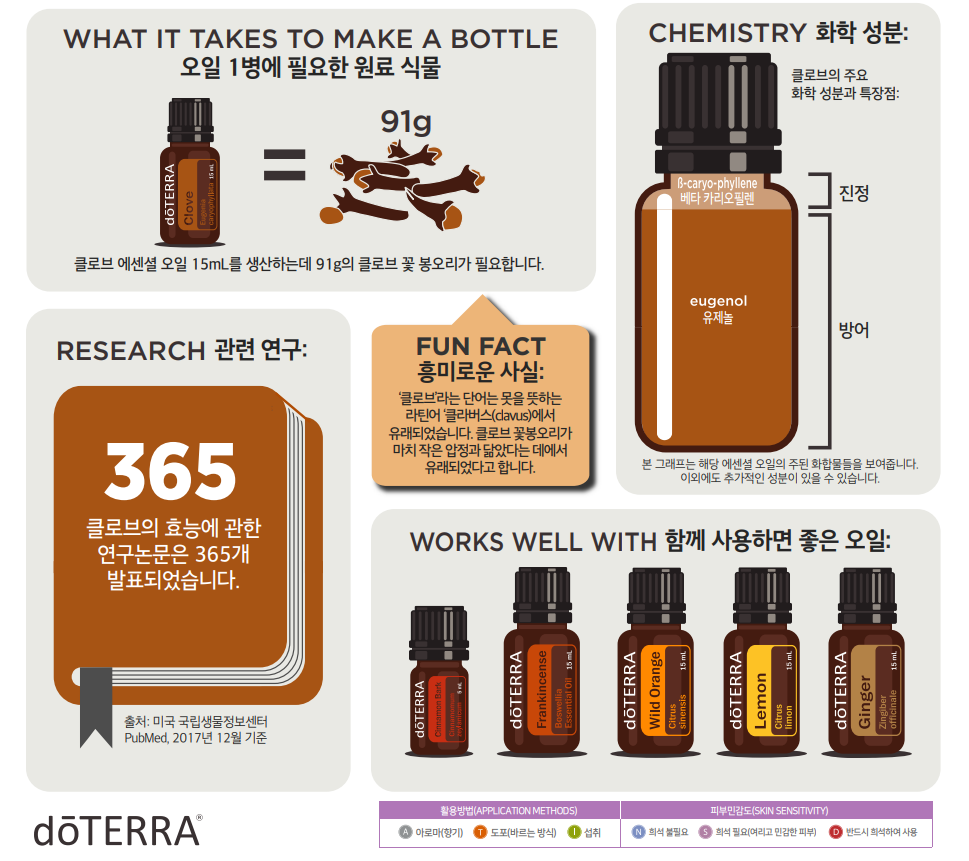 도테라의 100% 천연 클로브 에센셜 오일은 따뜻한 자연의 향기로 활력을 원할 때 또는 봄, 가을에 사용하시면 더욱 효과적입니다.