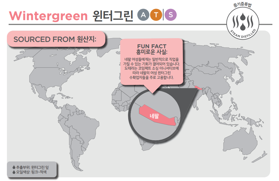 도테라의 윈터그린 에센셜 오일은 코-임팩트 소싱의 일환으로, 네팔에서 수확되며 이를 통해 지역 사회에 경제적인 기회를 나누는데 도움을 주고 있습니다.