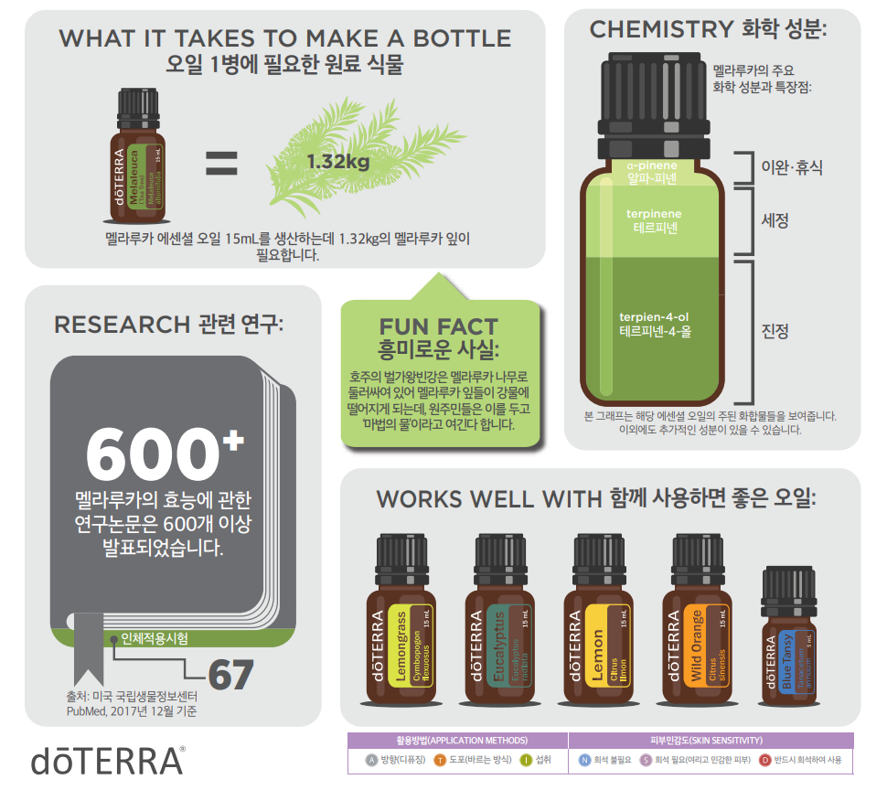 100% 천연 도테라 티트리 에센셜 오일은 시원하고 상쾌한 향기로 편안한 호흡과 진정에 도움을 주고 깨끗함을 드립니다.